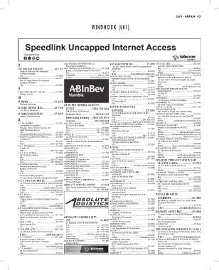 Klein Windhoek Box 61 ABC STATIONERS.............................................. 22 5982 ACCOLADE PROPERTIES NAMIBIA........... 22 2891 ADVANCE TRANSPORT .................................. 24 1690