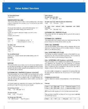 • Press * * and abbreviated code This service will block all incoming as well as outgoing calls on your