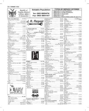,). .4, Republic of Gobabis Population TYPES OF SERVICE OFFERED