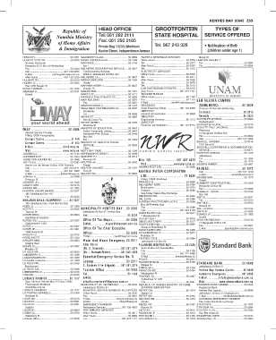 Pionierspark Windhoek MUNICIPALITY OF HENTIES BAY ............... 50 2000 REPUBLIC OF NAMIBIA MINISTRY OF HOME STANDARD BANK NAMIBIA ........................... 50 0648