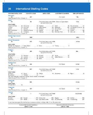 26 International Dialling Codes