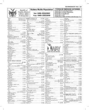 -,,,;--, ,,, -- Republic of Katima Mulilo Population TYPES OF SERVICE OFFERED