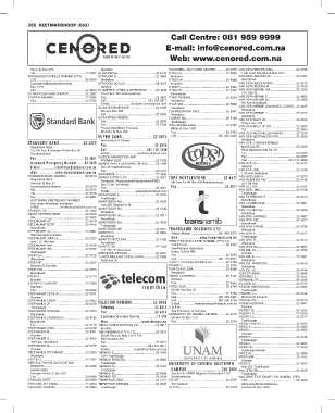 Autobank Emergency Number............ 81 9286 SWAPO PARTY REGIONAL OFFICE .......... 22 4196