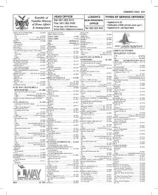 Republic of HEAD OFFICE LUDERITZ TYPES OF SERVICE OFFERED