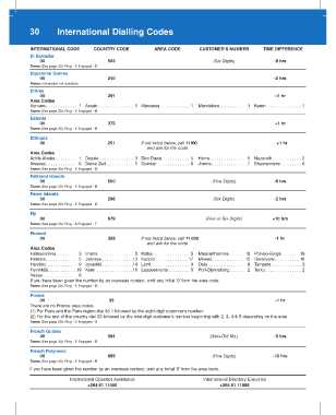 INTERNATIONAL CODE COUNTRY CODE AREA CODE CUSTOMER’S NUMBER TIME DIFFERENCE