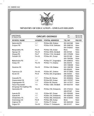 SCHOOL NAME 1-7 PO Box 696, Okahao TEL NO FAX NO
