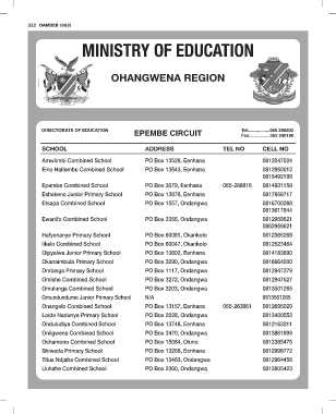 Amwiimbi Combined School PO Box 13526, Eenhana 065-288816 CELL NO