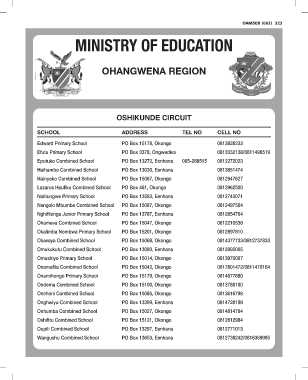 Wangushu Combined School PO Box 13653, Eenhana 0812739242/0816369995