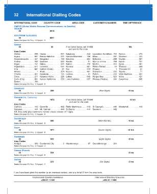 INTERNATIONAL CODE COUNTRY CODE AREA CODE CUSTOMER’S NUMBER TIME DIFFERENCE