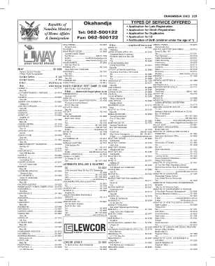Republic of Okahandja TYPES OF SERVICE OFFERED