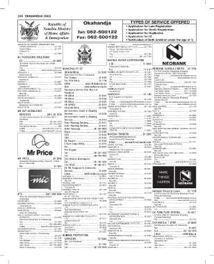 MOTJARI PHARMACY CC............................... 50 2762 Emergency Service After Hours & NAMIBIAN POLICE Electronic Banking Enquiries............. 086 011 5060