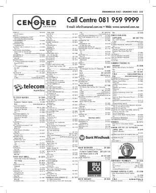 TJAZERUA CU...................................................... 50 1981 VOORSLAG STEELWORKS CC.............. 50 1570 Cell ............................................................. 081 124 5066