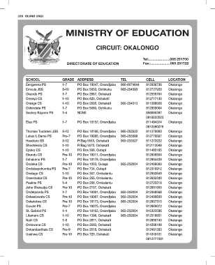 Onembaba CS Pre-10 PO Box 255, Ombalantu 065-252004 812632330 Okalango