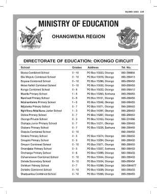 DIRECTORATE OF EDUCATION: OKONGO CIRCUIT