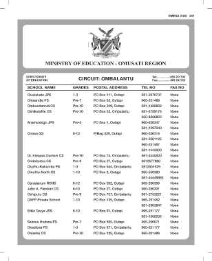 Ombundamuti CS Pre-10 PO Box 349, Outapi 065-251489 None