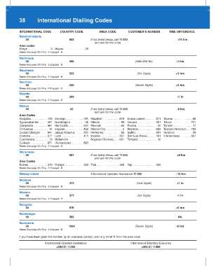 38 International Dialling Codes