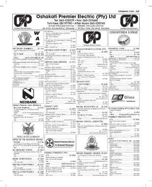 NORTHCARE PHARMACY ............... 22 1437 OMBA TRADING CC .......................................... 22 0825 OSHANDIRA LODGE............................. 22 0443