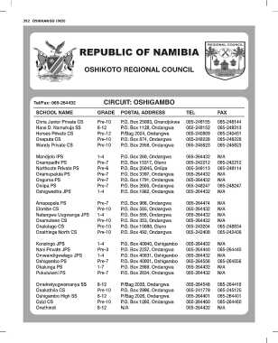 Oshigambo PS Pre-7 P.O. Box 40001, Oshigambo 065-264556 065-264556
