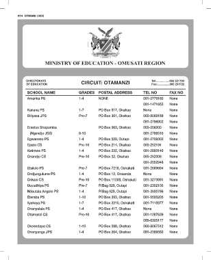 (Ngendjo JSS) Pre-10 PO Box 529, Outapi 081-2788510 None