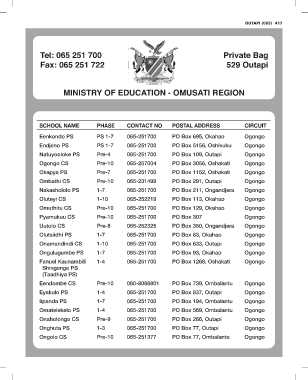 (Taadhiya PS) 1-4 065-251700 PO Box 837, Outapi Ogongo