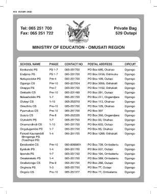 (Taadhiya PS) 1-4 065-251700 PO Box 837, Outapi Ogongo