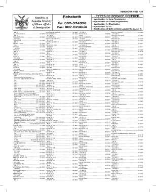 .. 0-,, Republic of Rehoboth TYPES OF SERVICE OFFERED