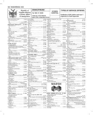 , Republic of SWAKOPMUND NYANGA TYPES OF SERVICE OFFERED