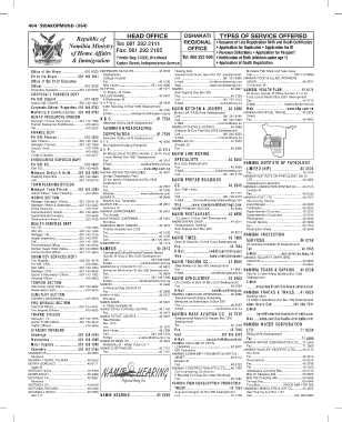 $ ' s ' -- Republic of HEAD OFFICE OSHAKATI TYPES OF SERVICE OFFERED