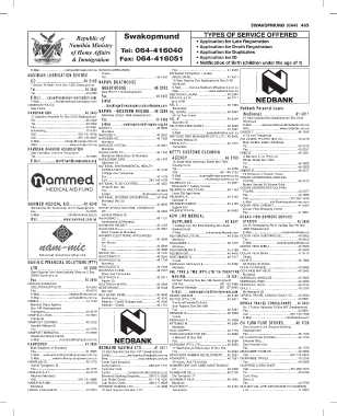 E-Mail .....swakopmunddistrict@nampower.com.na E-Mail .........................serviceplus@nedbank.com.na NORTHERN NAMIBIA DEVELOPMENT ..... 40 2531 Cell ............................................................. 081 124 6626