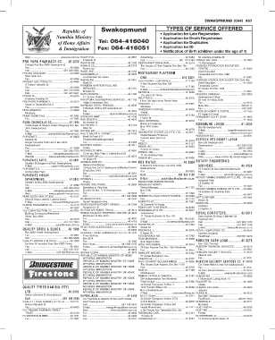 Republic of Swakopmund TYPES OF SERVICE OFFERED