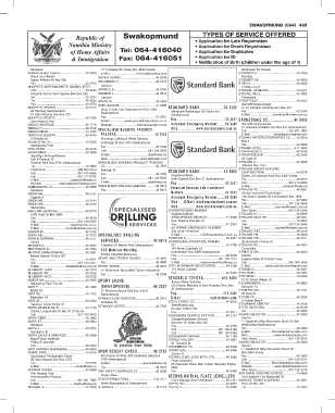 SINGH SM .............................................................. 40 7102 SPECIALISED DRILLING E-Mail .............................. info@standardbank.com.na STRAUSS PM ....................................................... 46 3828