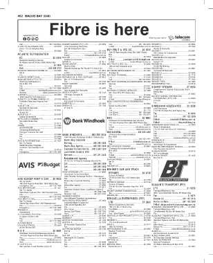 AVIS MOTORHUUR............................................ 20 7527 Customer Contact Centre Lost/Stolen Cards & BELMET MARINE ENGINEERING................ 27 4500 39/41 Circumferential Rd Box 96 Walvis Bay