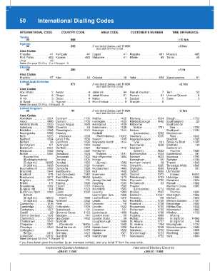 INTERNATIONAL CODE COUNTRY CODE AREA CODE CUSTOMER’S NUMBER TIME DIFFERENCE