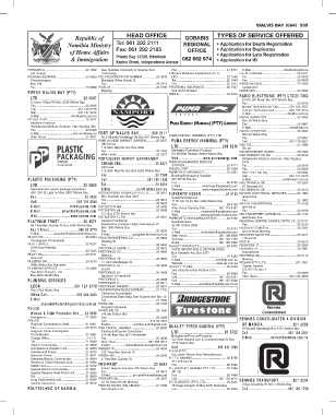 Special Branch Commander......................... 21 9031 8 Sam Nujoma Ave Box 706 Walvis Bay R J SOUTHEY NAMIBIA PTY LTD................ 20 7464