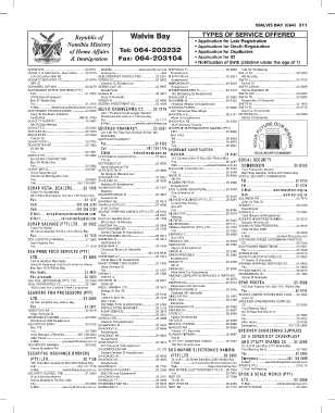 Republic of Walvis Bay TYPES OF SERVICE OFFERED