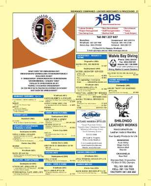 Windhoek (061) See our Ad This Page OKAHANDJA