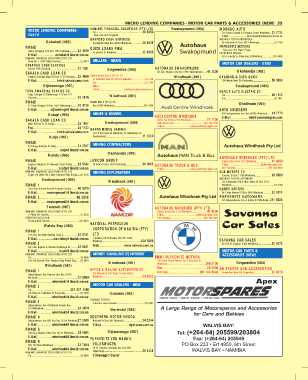 Continental Bldg Box 96133 Windhoek .................. 25 9838 Autohaus 65 Rehoboth Rd Box 5513 Windhoek .........................23 7130