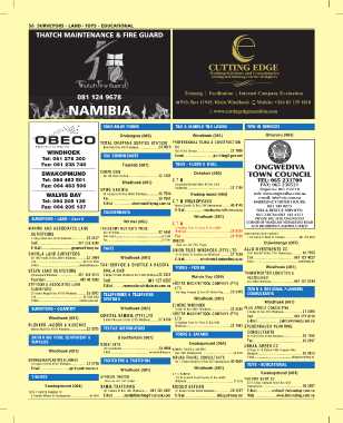 ENGINEERED PLASTICS & LININGS THATCHERS & THATCHING OIPUKA TRAVEL CONSULTANTS E-Mail..................................................... urbangreen@iway.na