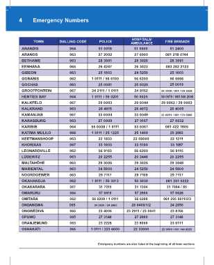 Emergency numbers are also listed at the beginning of all town sections