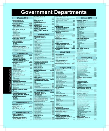Res: 251237 WORKS & SUPPLY, Ministry of Zambia Information Services Box 210317 .............................. 382844 With Fits to all wards .............................................................