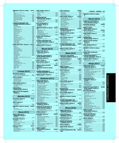 PRESIDENT'S OFFICE OF, Ministry 251375 HOME AFFAIRS, Ministry of HEALTH, Ministry of 230158 LUSAKA — MONGU 231