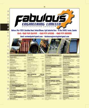 Kitwe (0212) R M FUMBESHI AND COMPANY ZAMBIA FITMENT CENTRE T/A KWIK... 286042 HENDUN EXPORTS LTD Box CA104 212756