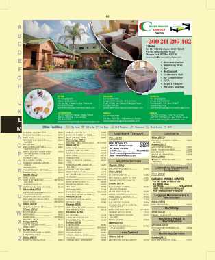Mfuwe (0216) 0977876003 FLORIANA LODGE Box 110183 NORTH EAST CARGO LOGISTICS Kitwe (0212) 239050