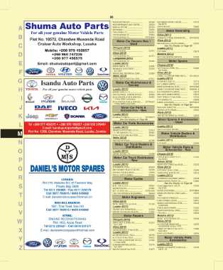 L Tel +260 977 456575 • +260 979 192057 +260 955 376481 Motor Car Parts Accessories
